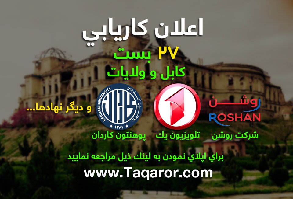Taqaror On Twitter اعلان کاریابی ۲۸ بست کابل و ولایات برای معلومات بیشتر و اپلای نمودن به ویبسایت ما مراجعه نمایید Https T Co Gwrro9suwx Https T Co Gyr3urig9y