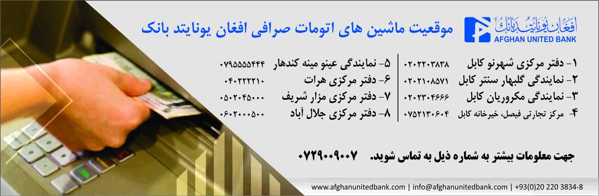 افغان یونایتد بانک به سلسله نصب ماشین Afghan United Bank Facebook