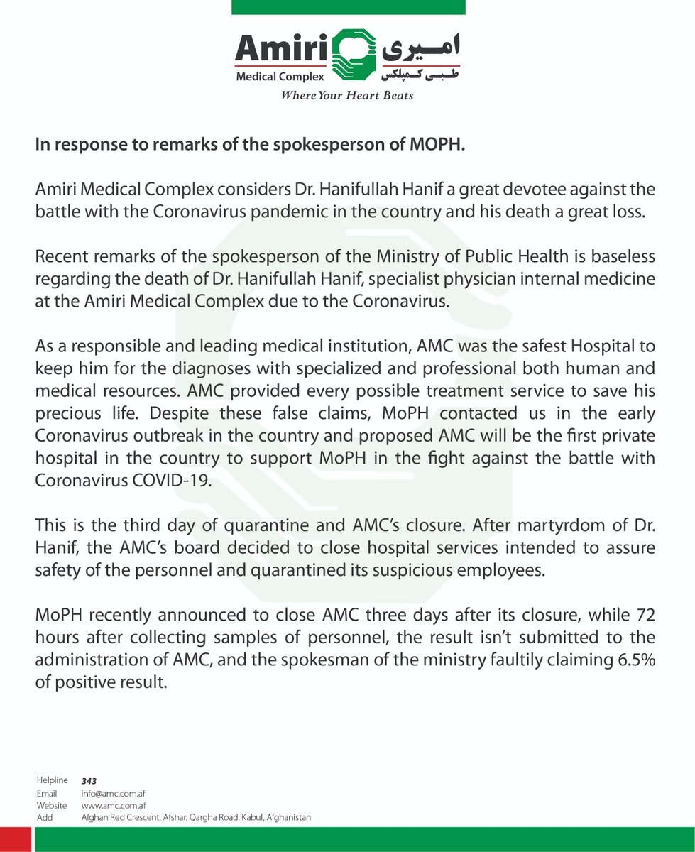 وزارت صحت عامه خواستار توقف فعالیت شفاخانه خصوصی امیری کمپلکس شد روزنامه انیس
