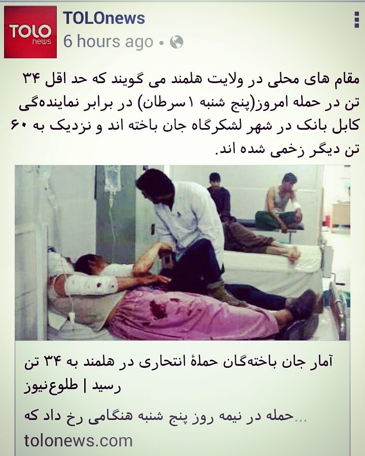 Afghanirca News Agency حمله انتحاری در هلمند ۳۴ شهید و ۵۸ زخمی بجا گذاشت