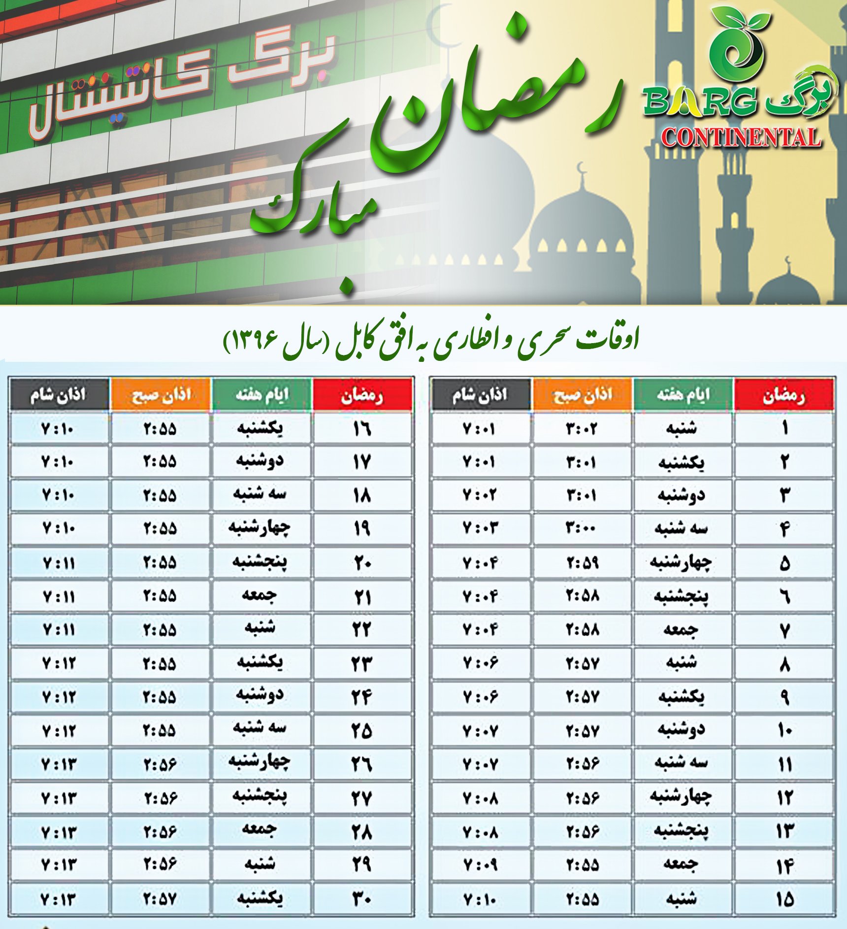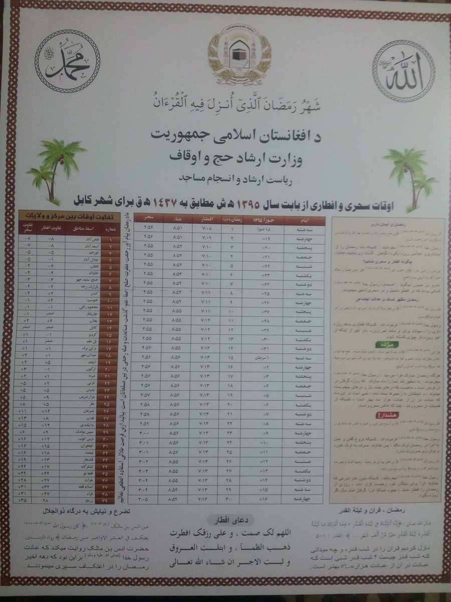 Barg Continental On Twitter اوقات سحری و افطاری به افق کابل