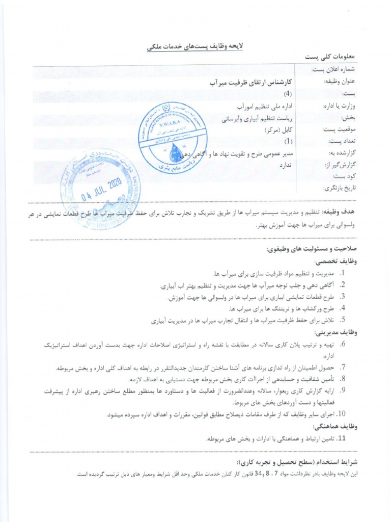 کارشناس ارتقای ظرفیت میراب ریاست تنظیم ابیاری و ابرسانی Pdf