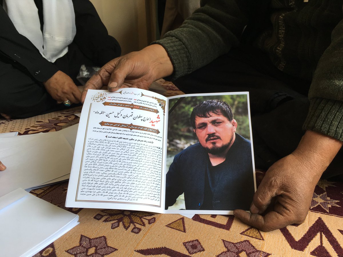 Khalil Noori Ar Twitter وکیل حسین الله داد مدال آور از مسابقات جنوب آسیا و عضو تیم ملی پهلوانی یکی از هفتاد نفری است که در حمله انتحاری روز یکشنبه در کابل