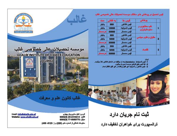لیست تخفیف های موسسات تحصیلات عالی خصوصی دانشگاه کابل Kabul University پوهنتون کابل Facebook