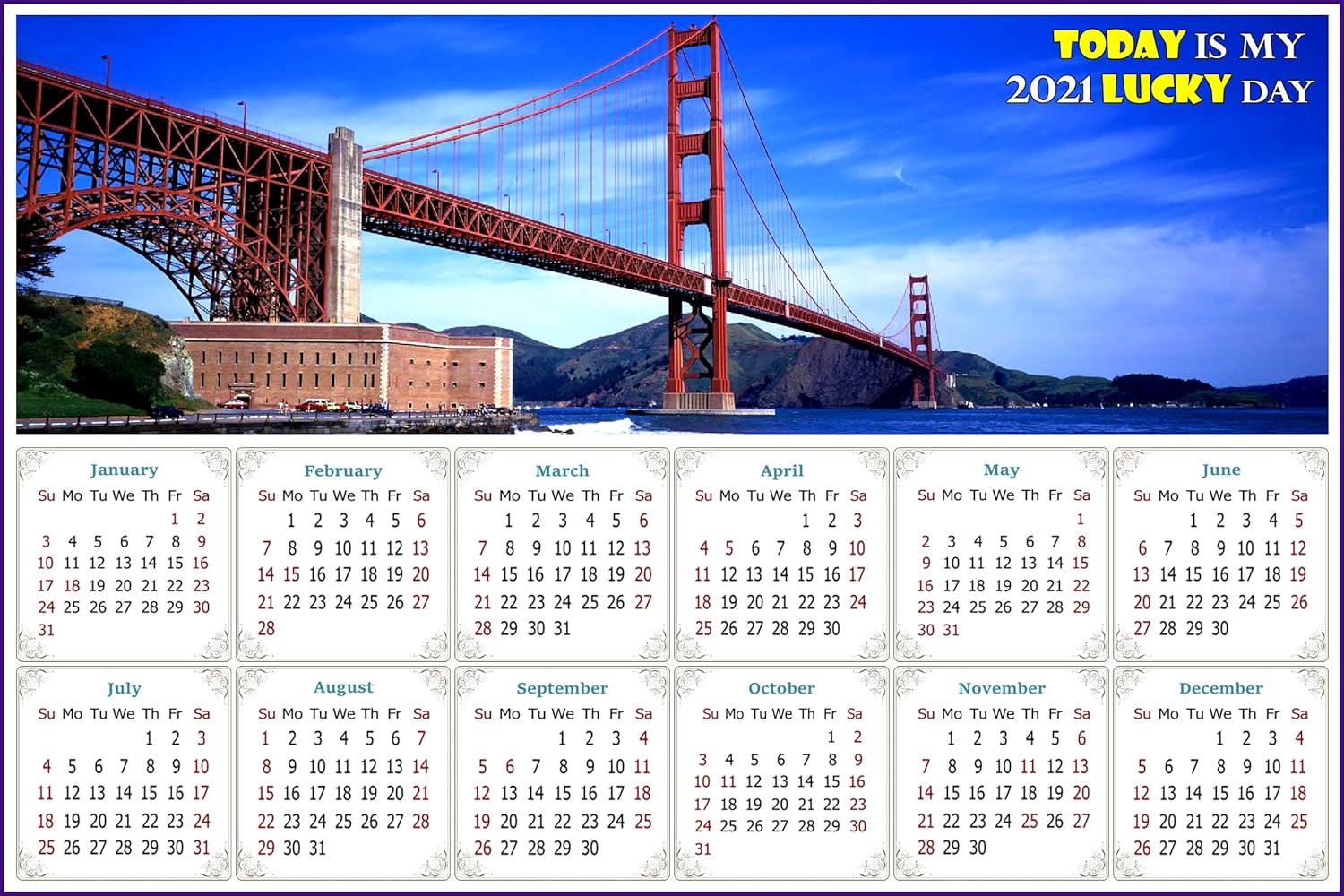 2020 Magnetic Calendar Calendar Magnets Today Is My Lucky Day Golden Gate Bridge Amazon Co Uk Office Products