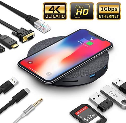 قیمت و خرید 2019 نسخه Usb C هاب Usb با شارژر و فن بی سیم 11 در 1 آداپتور Usb C با اترنت 4k Usb C به Hdmi Vga