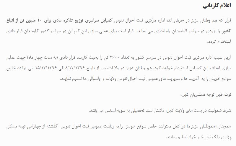 اداره ثبت احوال نفوس توزیع شناسنامه های الکترونیکی جریان دارد روزنامه افغانستان