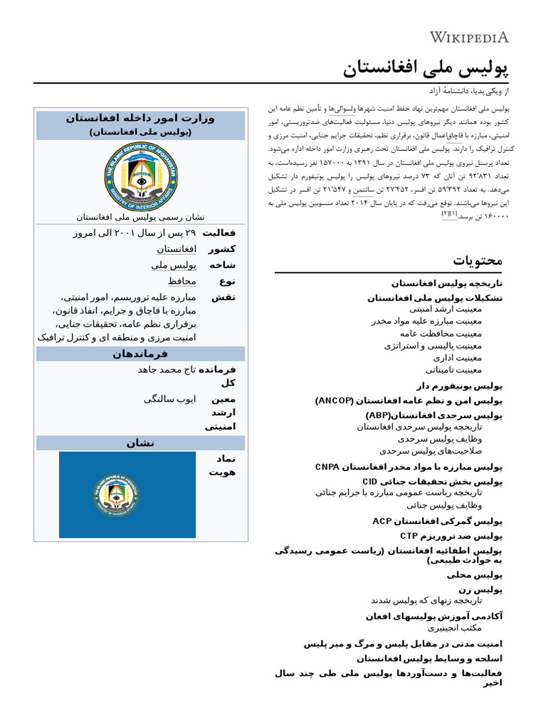 پولیس ملی افغانستان ویکی پدیا دانشنامه آزاد