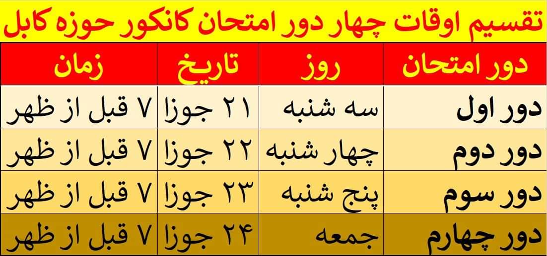 برنامه امتحانات دور سوم و دور چهارم کانکور ۱۳۹۹ خبرگزاری شیعیان افغانستان Afghanistan Shia News Agency