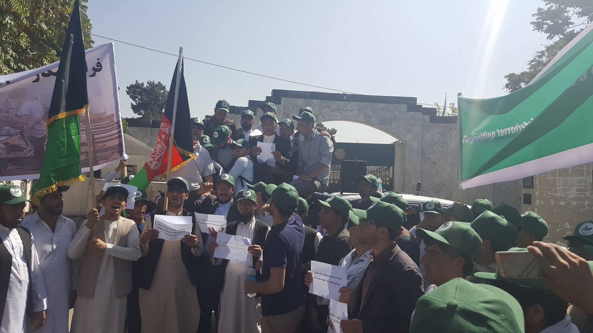 نهاد روند سبز افغانستان در مقابل سفارت پاکستان در کابل دست به تظاهرات زدند