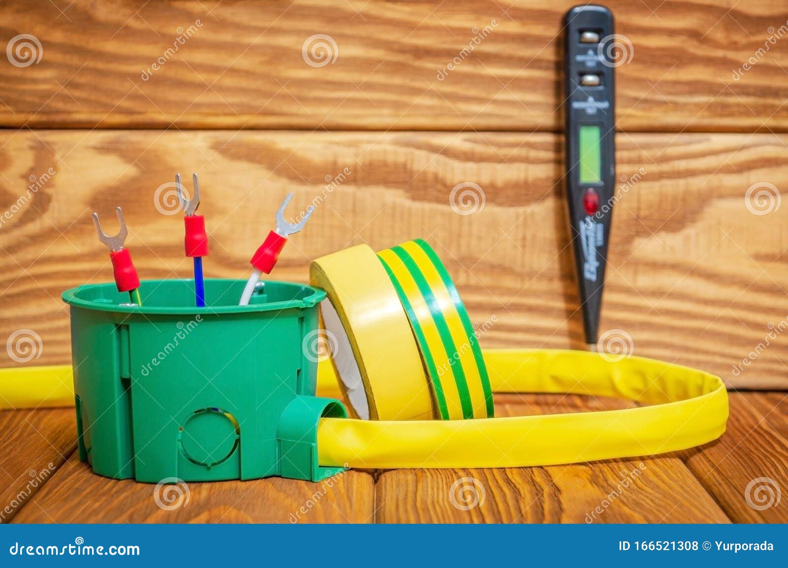 Electrical Junction Green Box With Cable Wire Used In The Electric Installation Process Stock Photo Image Of Industrial Construction 166521308
