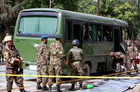 Marya Ysofzay حوالی ساعت ۷ صبح امروز چهارشنبه زمانی که یک موتر بس حامل سربازان اردوی ملی از ساحه سه راهی وزارت زراعت از مربوطات حوزه سوم امنیتی شهر کابل می گذشت