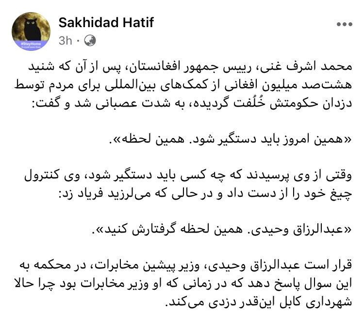Aryanaroon آرین آرون On Twitter به این گفته سخیداد هاتف شک نکنید که اشرف غنی یک بار دیگر عبدالرزاق وحیدی را به دادگاه بفرستد اما در مورد اختلاس ۸۰۰ میلیون افغانی توسط