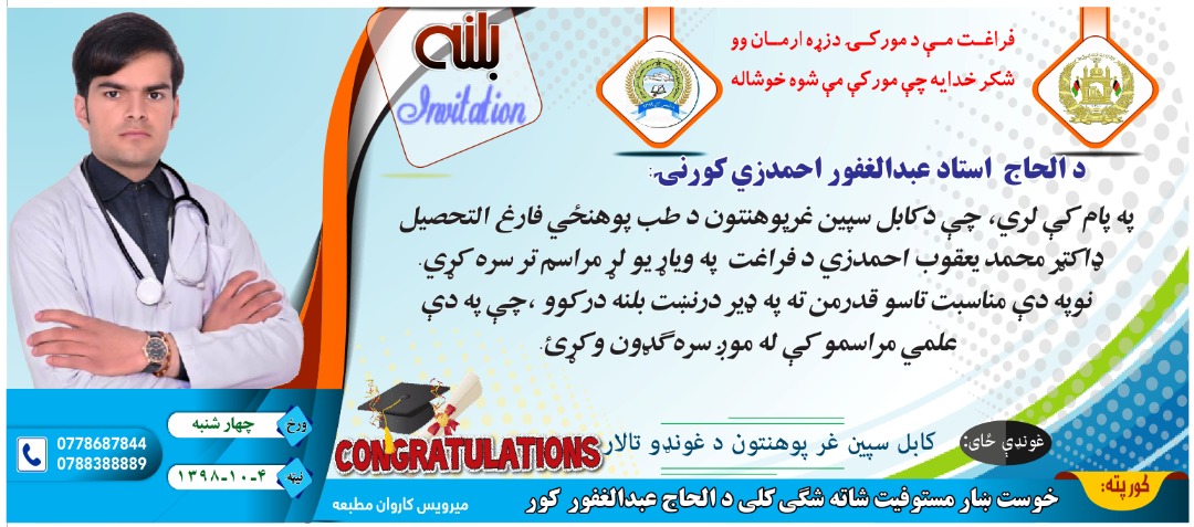 Dr Yaqoob Ahmadzai On Twitter د طب پوهنځي شپږ کلنه دوره مو له خیره سره په اعلی درجه سرته ورسوله تاسې ټول ملګري زمونږ سره په دې خوشحالۍ کې ګډون وکړئ راتګ