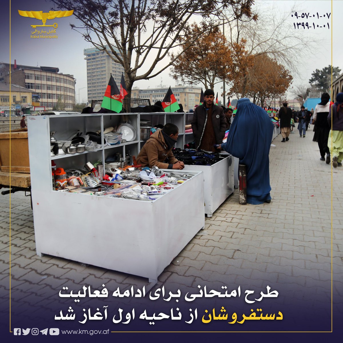 Kabul Municipality شاروالی کابل طرح جدید آزمایشی برای فعالیت مصوون دست فروشان از ناحیه اول آغاز شد