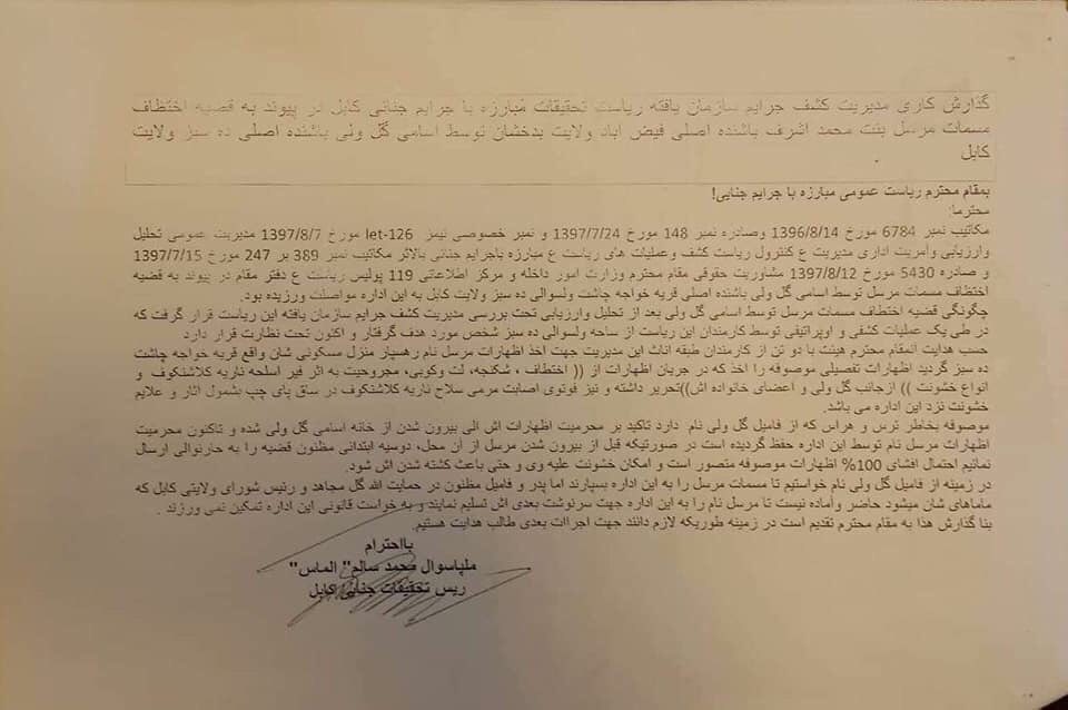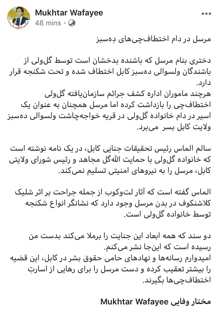Aryanaroon آرین آرون On Twitter دختری بنام مرسل که باشنده بدخشان است توسط گل ولی از باشندگان ولسوالی ده سبز کابل اختطاف شده و تحت شکنجه قرار دارد سالم الماس رئیس تحقیقات جنایی کابل