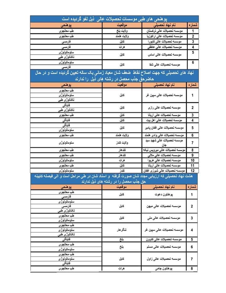 لوړو زده کړو وزارت د شپږو خصوصي پوهنتونونو طبي څانګو جوازونه لغوه کړل نن ټکی اسیا