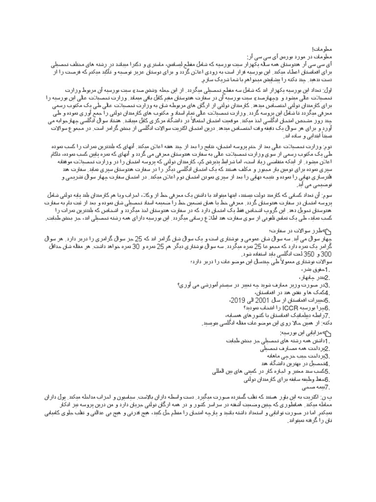 نمونه سوالات بورس پاکستان مقطع لیسانس Scholarship For Afghanistan Facebook