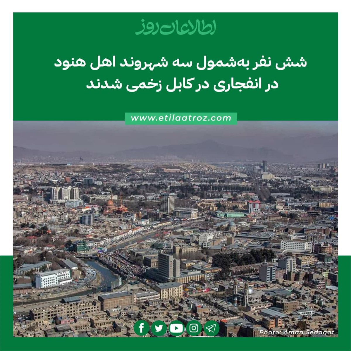اطلاعات روز Etilaatroz على تويتر پولیس کابل می گوید که حوالی ساعت ۶ ۵۵ دقیقه ی شام امروز پنج شنبه ۴ جدی انفجاری در مربوطات ناحیه ی پنجم شهر کابل رخ داده است فردوس فرامرز سخن گوی