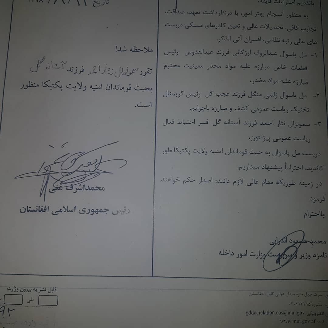 Pajhwok Afghan News A Twitter سمونوال نثار احمد عبدالرحیمزی د ولسمشر د حکم په اساس د پکتیکا د نوي امنیه قوماندان په توګه وګمارل شو