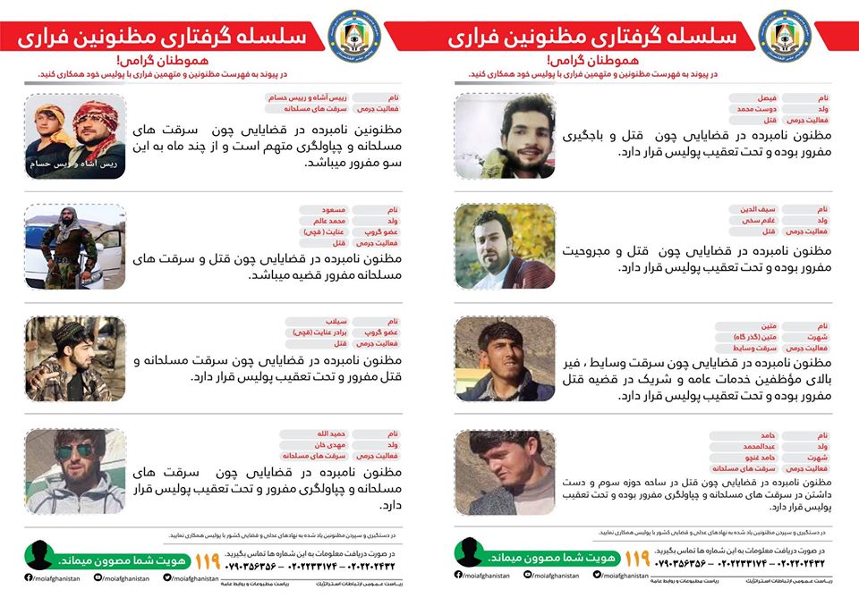 Ariana News On Twitter وزارت امور داخله یک فهرست شانزده نفری ای از متهمان قتل چپاولگری رهزنی و اخلال امن و نظم عامه در کابل را منتشر کرده است این وزارت از