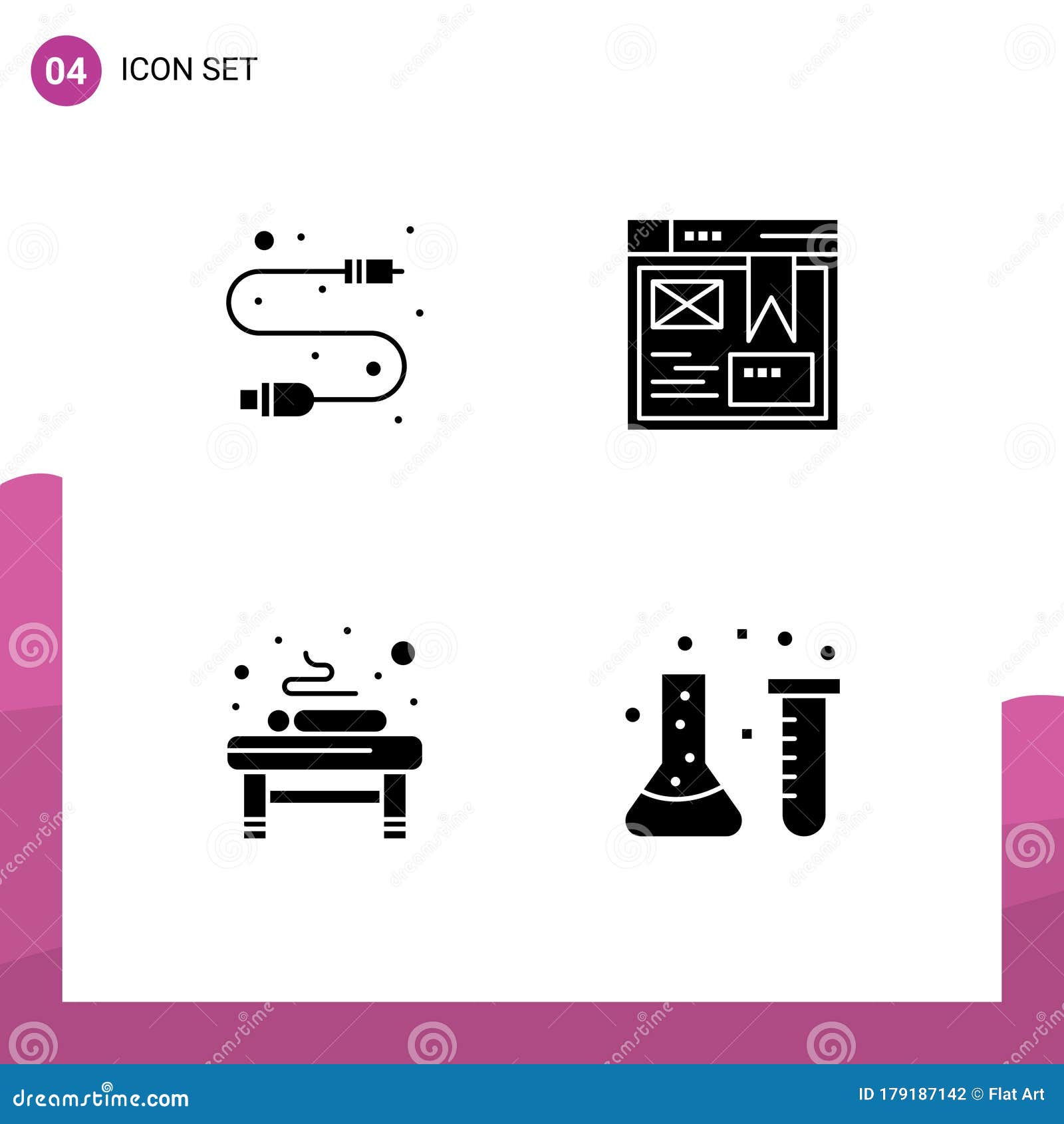 Pictogram Set Of 4 Simple Solid Glyphs Of Cable Massage Wire Design Spa Stock Vector Illustration Of Industry Acid 179187142