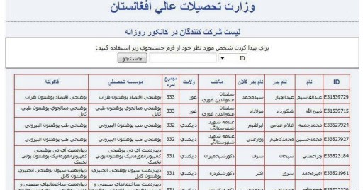 وزارت تحصیلات عالی افغانستان نتایج کانکور سال ۱۳۹۶ را اعلان کرد