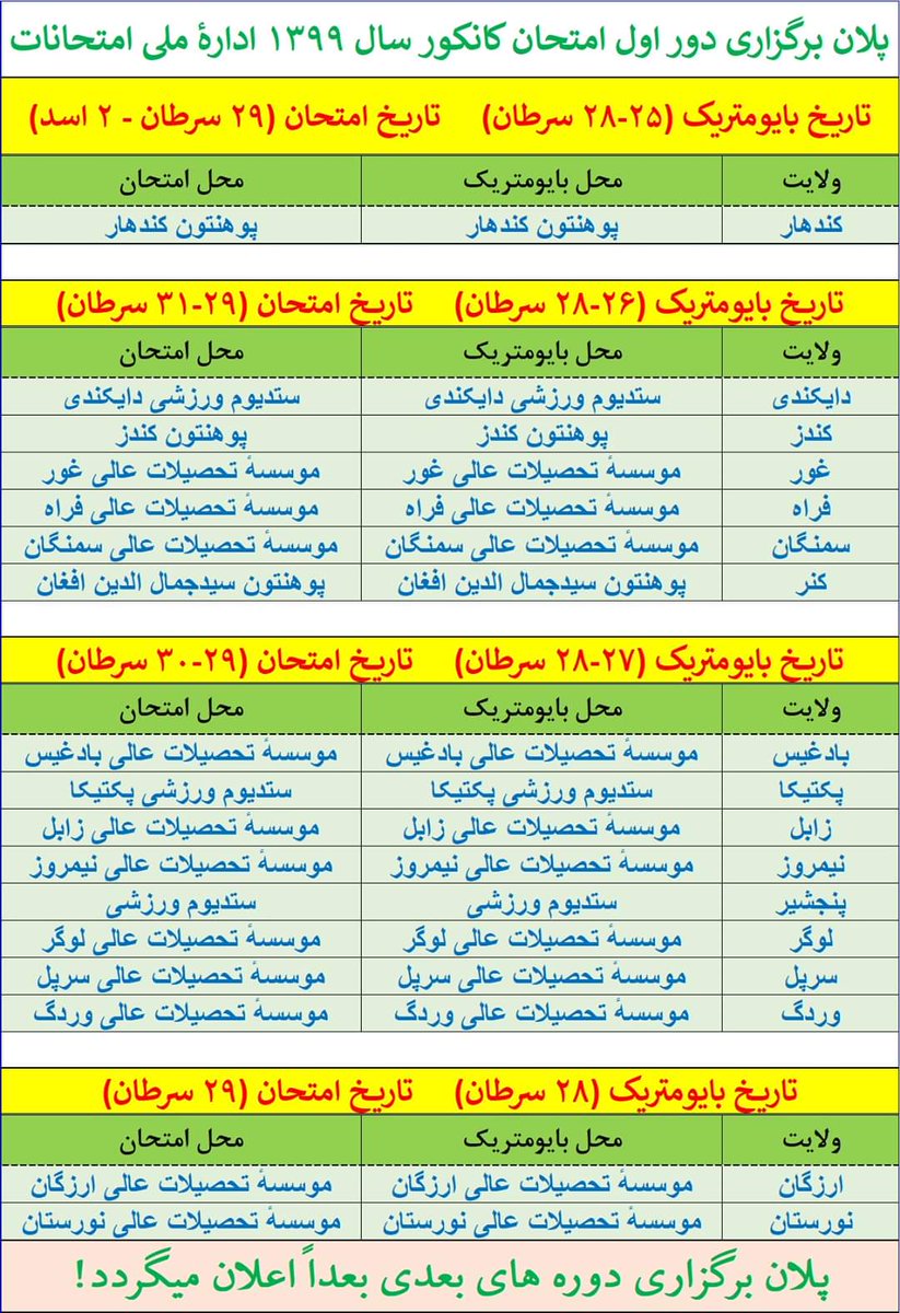 اطلاعیه در مورد اعلان نتایج کانکور سال ۱۳۹۶ Af Covid 19