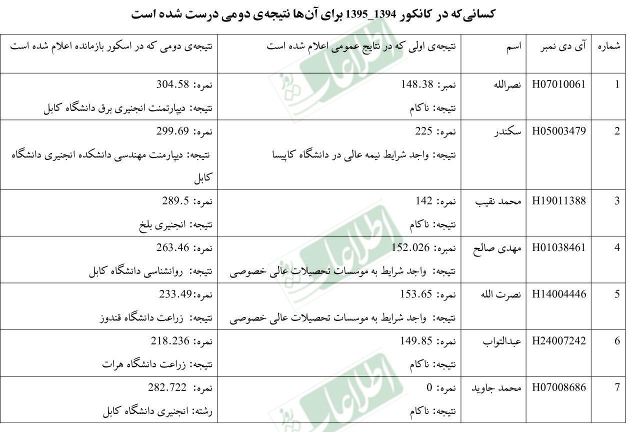 اعلام نتایج امتحان کانکور سال ۱۳۹۴
