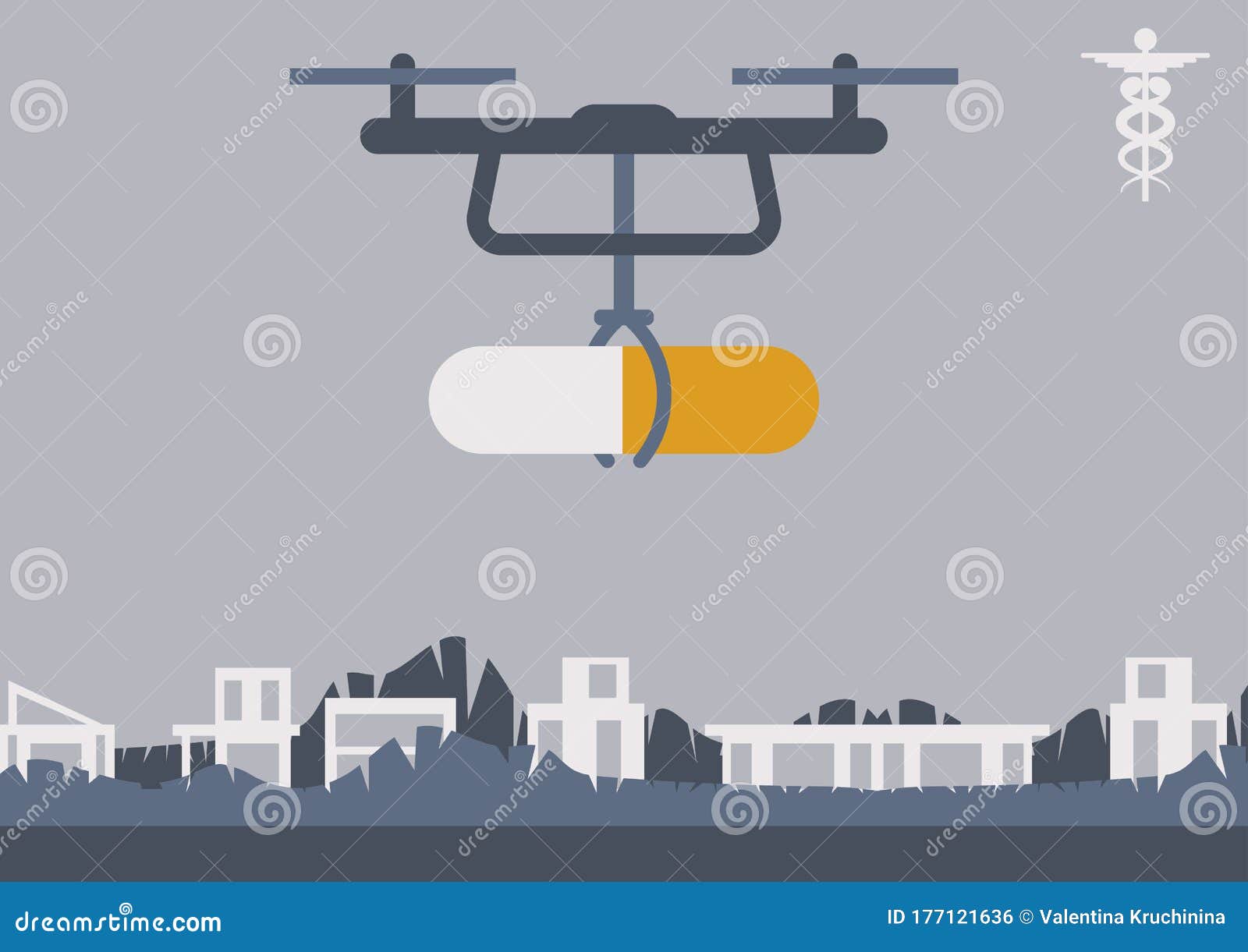 A Drone Is Carrying A Pill Stock Vector Illustration Of Delivery 177121636