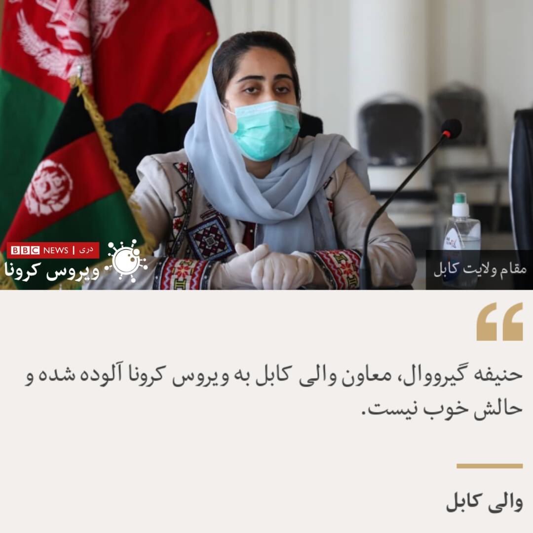 Khalil Noori على تويتر والی کابل تایید کرد که نتیجه آزمایش حنیفه گیرووال معاون امور اجتماعی مقام ولایت مثبت بوده و در سه روز گذشته وضعیت صحی خوبی نداشته یعقوب حیدری گفت