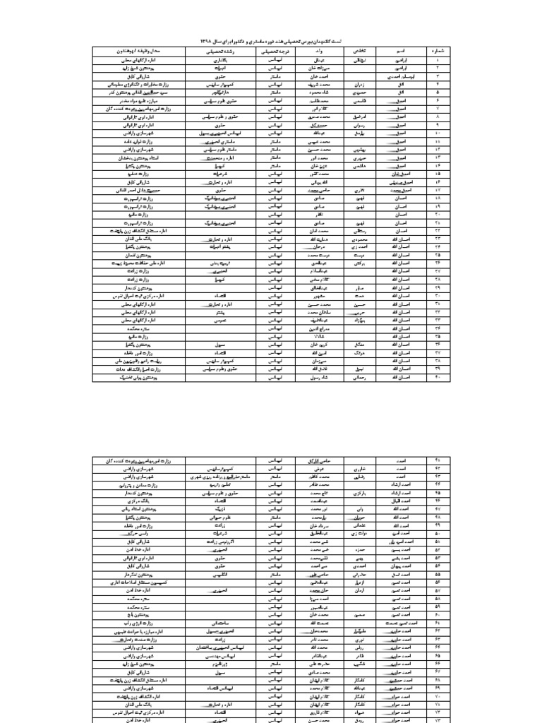 لست عمومی تکمیل فورم ماستری ودکتورا