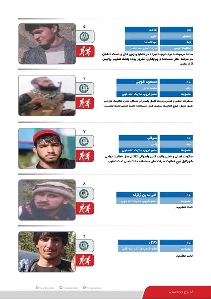 Moi Releases New List Of Wanted Criminals Operating In Kabul City The Khaama Press News Agency