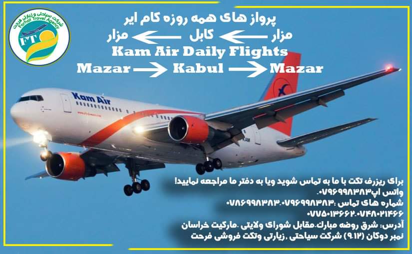 روزها و ساعت حرکت پروازهای مستقیم کامایر مزارشریف افغانستان مشهد