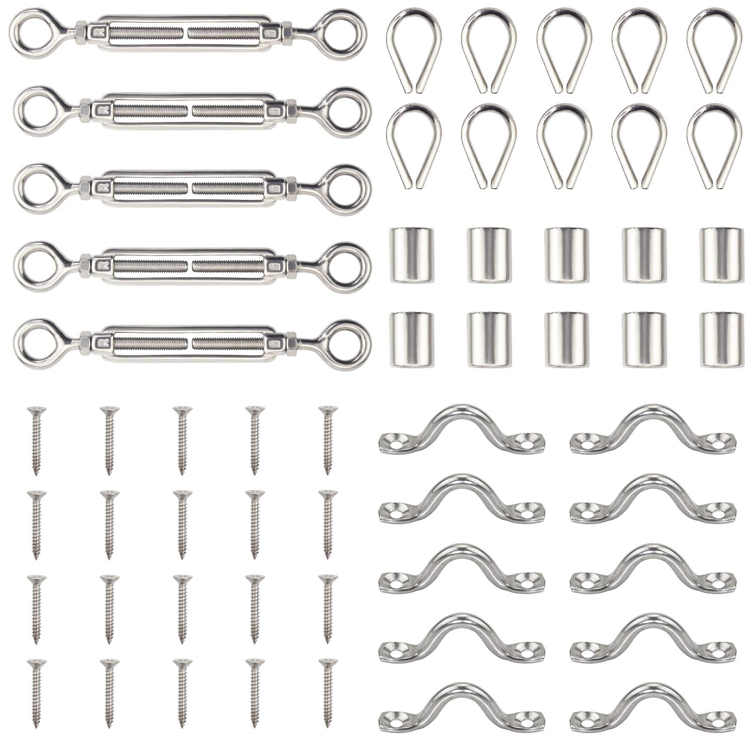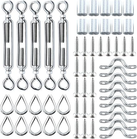 Dasmarine 5 Pack Heavy Duty Stainless Steel Cable Railing Kits With Hook Eye Turnbuckle Wire Rope Fit 1 8 Stainless Steel Wire Rope Cable For Wood Posts Tools Home Improvement Decking