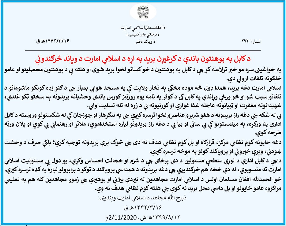 Zabihullah ذبـــــیح الله م No Twitter د کابل په پوهنتون باندې د کرغیړن برید په اړه د اسلامي امارت د ویاند څرګندونې Https T Co Nepjewivox