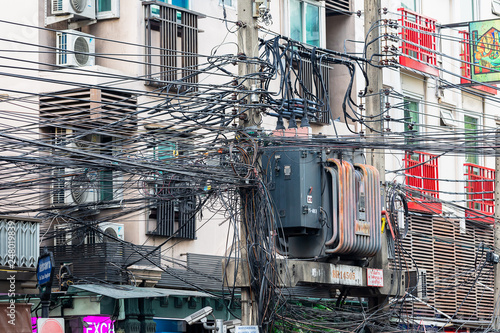 Power Cable Cable Salad Knotted Strommast Chaos Power Distribution Unit Thailand Bangkok Pikist