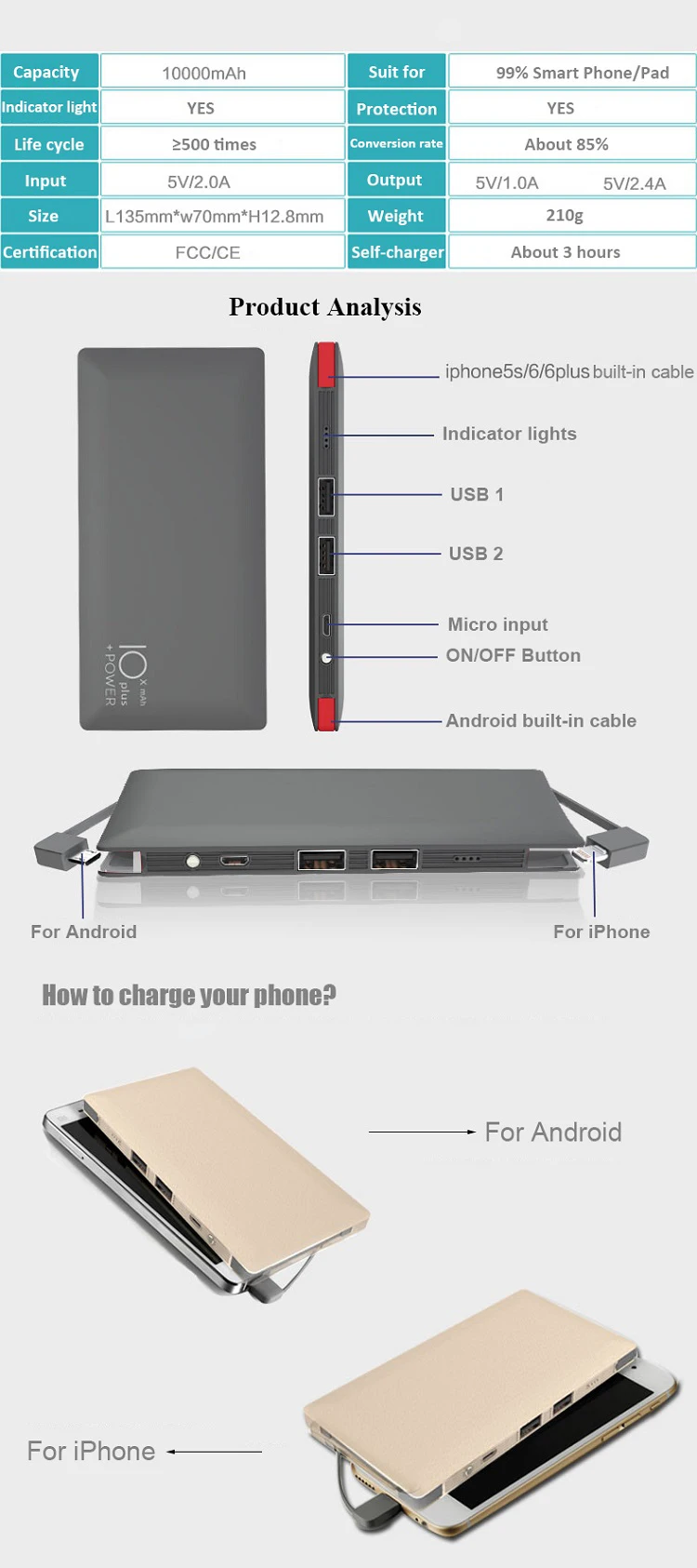Smart Rohs Slim Customs Logo High Quality Polymer Built In Cable Power Bank 10000mah Buy Power Bank 10000mah Smart Power Bank Rohs Power Bank 10000mah Product On Alibaba Com