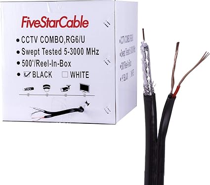 Dc Power Black Cable Reel Coax Cctv Bulk 500ft Siamese Rg6 Coaxial Security Camera Cables Adapters