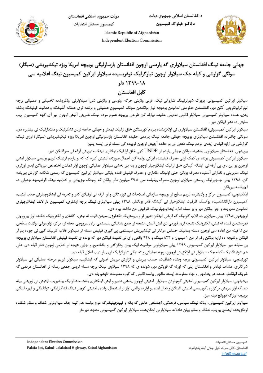 بیانیه هیأت رهبری کمیسیون مستقل انتخابات Independent Election Commission Of Afghanistan Facebook