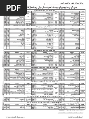 ظرفیت و جدول کود رشته دانشگاه ها برای امتحان کانکور سال 1399 سیاح آنلاین