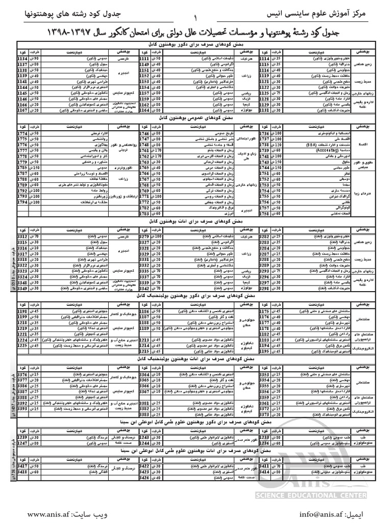 Https Anis Af Wp Content Uploads 2020 12 1398 1399 Kankor Code Numbers Pdf